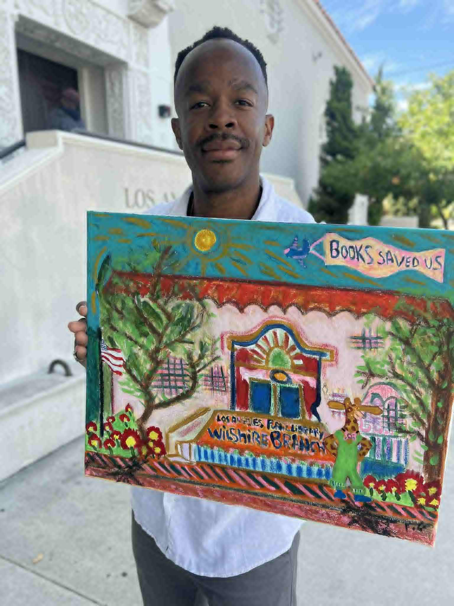 Fabrice’s work “Frank at the Wilshire Public Library” was recently selected to represent the library and feature on FOWL merchandise for 2025.