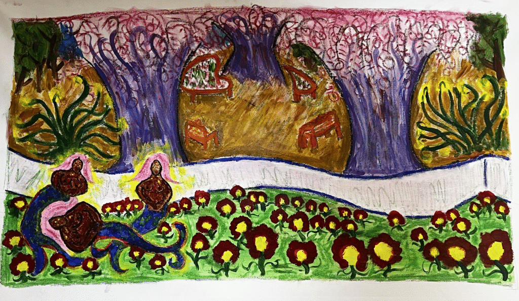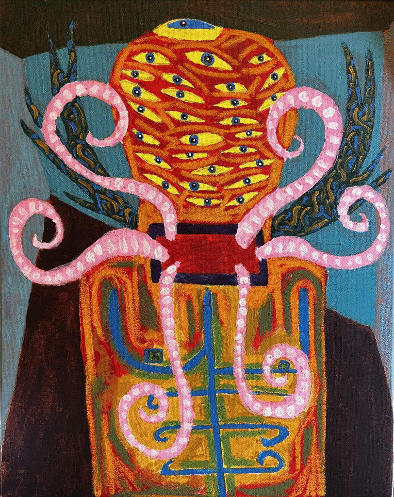 Revolutionaries of the Future renders visionary beings born from collapse and transformation, figures whose many eyes witness both ancestral memory and emergent possibility, embodying what revolutionary consciousness actually looks like: multiple, hybrid, spiritually armed.
